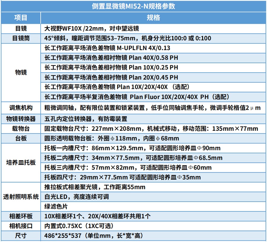 明美倒置顯微鏡MI52-N產(chǎn)品介紹