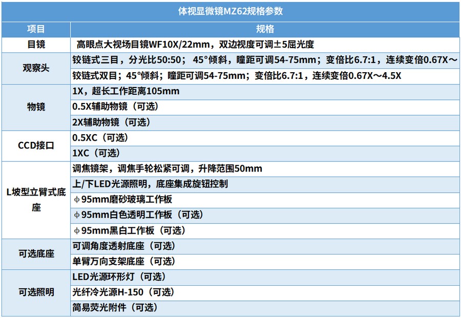 明美體視顯微鏡MZ62產(chǎn)品介紹