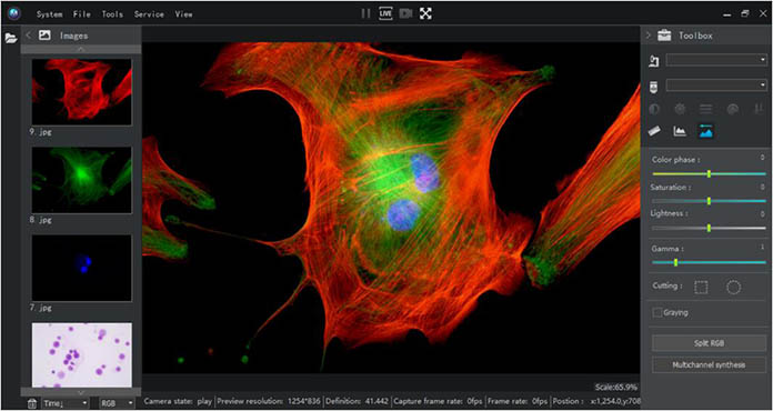 明美顯微數(shù)碼測(cè)量分析系統(tǒng)MShot Image Analysis System專業(yè)用于顯微鏡數(shù)碼成像應(yīng)用,軟硬件集成一體化系統(tǒng),以高性能和易用性為目標(biāo),通過(guò)軟件控制相機(jī),完成實(shí)時(shí)拍照、錄像、測(cè)量統(tǒng)計(jì)、實(shí)時(shí)熒光多通道合成、圖像處理等功能,支持Directshow接口攝像頭,支持中文、英文實(shí)時(shí)切換。