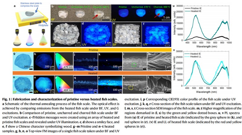 ①Sow, Malcolm & Zhang, Zheng & Sow, Chorng & Lim, Sharon. (2023). Upcycling fish scales through heating for steganography and Rhodamine B adsorption application. Nature Communications. 14. 10.1038/s41467-023-42080-1. via CC BY 4.0
