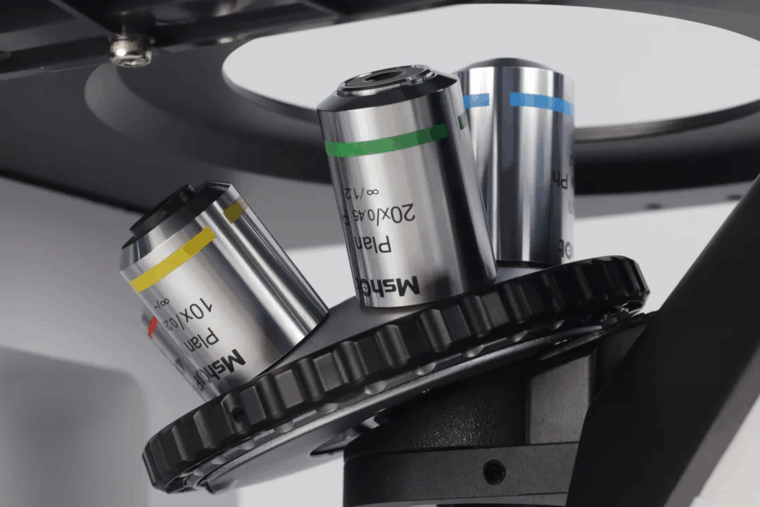 編碼式物鏡轉(zhuǎn)盤:物鏡轉(zhuǎn)盤切換可與明美顯微成像系統(tǒng)軟件聯(lián)動(dòng),實(shí)現(xiàn)物鏡倍率信息、軟件標(biāo)尺、光強(qiáng)及成像參數(shù)的自動(dòng)切換,并有語音提示和數(shù)顯屏幕雙重提示,大大方便使用。