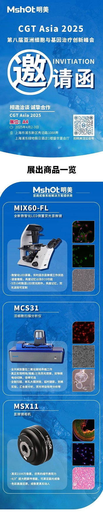 CGT Asia 2025 | 明美光電邀您共探細(xì)胞與基因治療新未來!