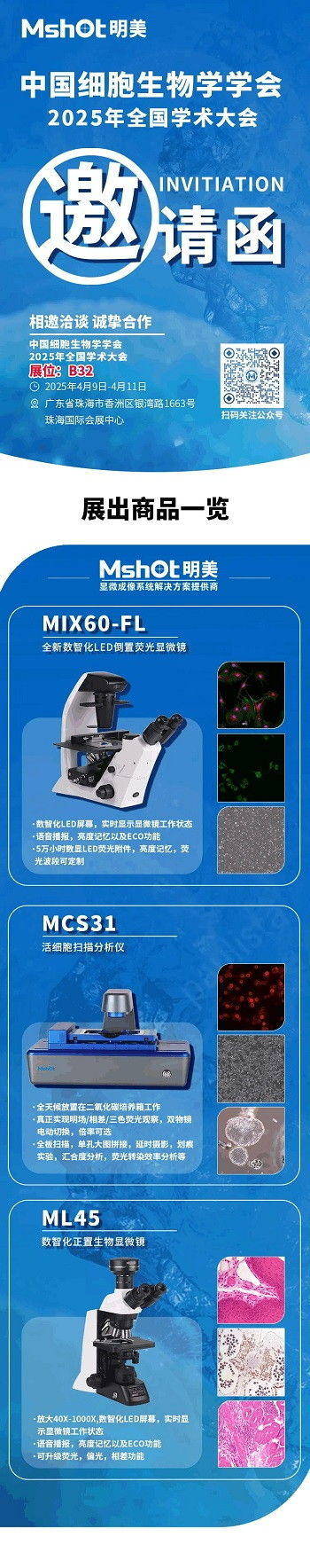 展會邀請 | 明美光電邀您共赴中國細胞生物學(xué)學(xué)會2025年全國學(xué)術(shù)大會