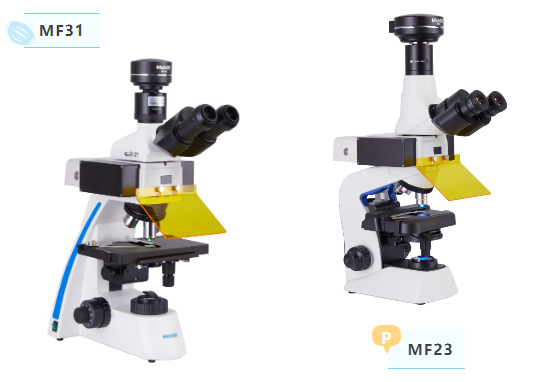 正置熒光顯微鏡MF31/MF23:采用無(wú)限遠(yuǎn)平場(chǎng)消色差物鏡,40x-1000X放大,可用雙目或三目觀察,搭配LED熒光激發(fā)裝置,實(shí)現(xiàn)明場(chǎng)和熒光顯微觀察