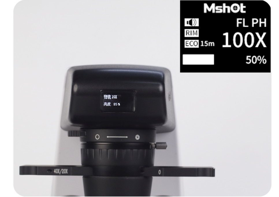 機身OLED數(shù)顯屏實時顯示物鏡倍率與光強,語音播報功能提升操作效率,讓研究人員專注于科學問題而非設備調(diào)試。