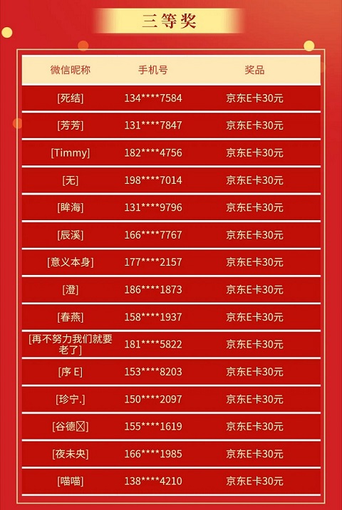 本次活動得到了大家的熱情響應(yīng),問卷現(xiàn)已圓滿結(jié)束。我們依據(jù)活動規(guī)則,從所有有效問卷中隨機抽取了以下幸運用戶,恭喜他們中獎!