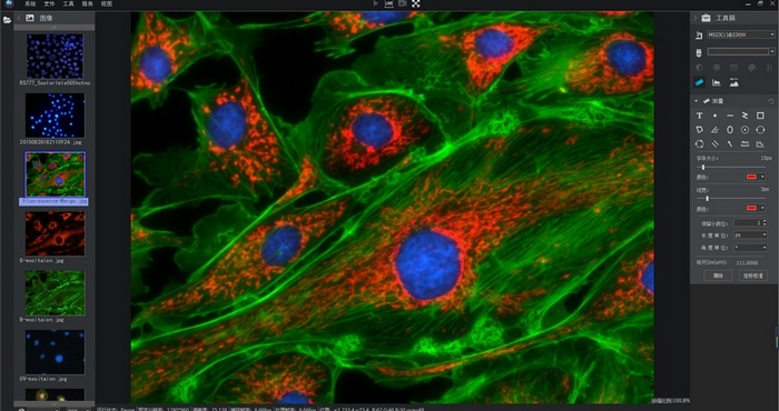 基于明美豐富的熒光成像經(jīng)驗(yàn),明美顯微數(shù)碼測(cè)量分析系統(tǒng)還提供了熒光背景、多色熒光合成等各種熒光成像輔助和處理功能,能讓用戶更輕松獲得高對(duì)比度、高清晰度的多色熒光成像。