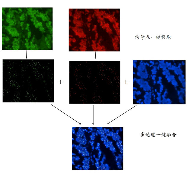 熒光顯微鏡檢做為FISH檢測(cè)最后一道關(guān)鍵工序,在推進(jìn)FISH技術(shù)的進(jìn)程中扮演著不可或缺的角色。Mshot明美開(kāi)發(fā)了FISH熒光鏡檢的整套解決方案,這其中包括Mshot明美科研級(jí)正置熒光顯微鏡MF43-N以及專(zhuān)用于FISH檢測(cè)的醫(yī)學(xué)影像處理軟件系統(tǒng)Mshot V2.0,醫(yī)學(xué)影像處理軟件系統(tǒng)配套了2100萬(wàn)像素科研級(jí)制冷高分辨率、高靈敏度、高特異性的熒光攝像頭,軟件具有自動(dòng)熒光信號(hào)點(diǎn)提取、景深擴(kuò)展、多通道融合及自由報(bào)表等功能,打通FISH樣片熒光檢測(cè)—圖像處理—出具報(bào)告這條完整產(chǎn)線(xiàn)的應(yīng)用需求。其中強(qiáng)大的自動(dòng)熒光信號(hào)點(diǎn)提取功,可以將提取出的信號(hào)點(diǎn)不丟失、亮度不減弱,快速且準(zhǔn)確,大大提升了FISH圖像處理效果以及FISH圖像處理效率。以下是FISH熒光信號(hào)點(diǎn)一鍵提取功能的效果演示。