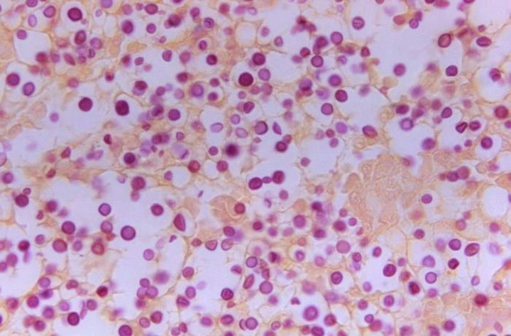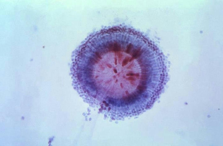 在生物顯微鏡明場(chǎng)觀察,呈球形或橄欖球形,菌體直徑4-20um,莢膜寬3-5um,不易染色。