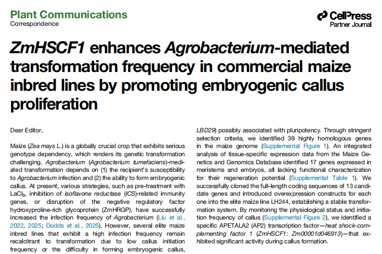 玉米,作為全球三大主糧之一,其遺傳轉(zhuǎn)化技術(shù)的發(fā)展始終關(guān)系著國(guó)家糧食安全的命脈。然而,一個(gè)長(zhǎng)期存在的行業(yè)難題——嚴(yán)重的“基因型依賴性”,猶如一道天塹,阻礙了優(yōu)秀基因直接導(dǎo)入大多數(shù)商業(yè)玉米品種的步伐。